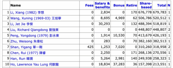 香港上市公司董事薪酬:李想6.8亿 刘强东4.49亿