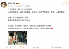 日本演员矢野浩二11月18日在微博发文,表示永远支持一个中国。 矢野浩二写道,“二十五年前,我一个人来到中国。从最初的陌生,到如今的温暖,是这片土地给了我事业、友情、人生的意义。中…