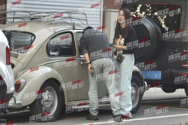马苏上身一件黑色短袖,下身一条蓝色牛仔裤,打扮十分休闲随意;男子穿着同款牛仔裤,搭配灰色外套,走在马苏的身边,乍一看很不起眼。