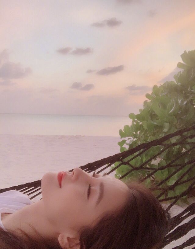 所晒照片的时间地点标注清晰,于2019年1月的马尔代夫拍摄。内容是各种角度下的美照与自拍,乍一看大同小异,细看之下却有不同的美丽。