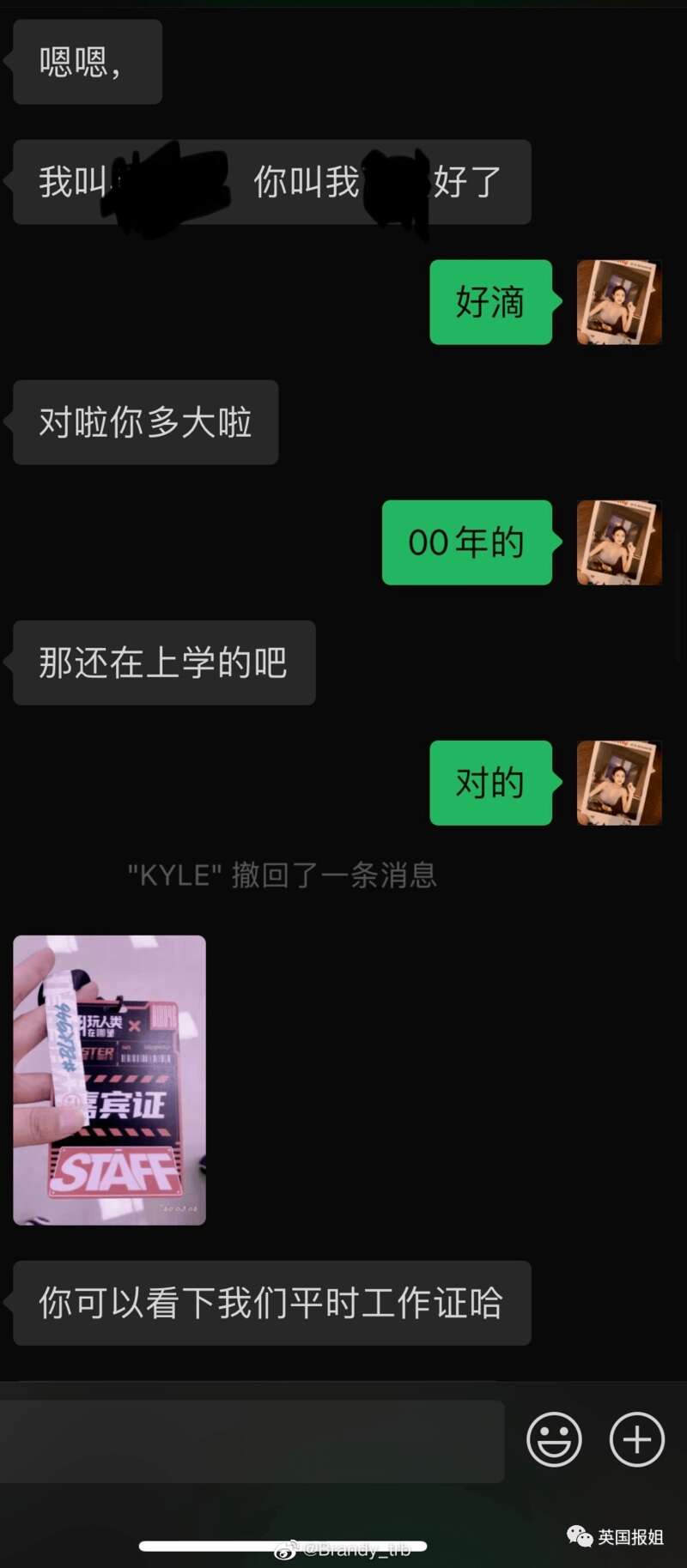 6点——网友@Brandy_trb 也发出聊天记录。曾被工作人员邀请见面,套路再次和都美竹与其他女生完全对上了——骗她说吴亦凡团队要去上海拍摄,需要一个女孩客串。小姐姐也感叹:还好当时没去。
