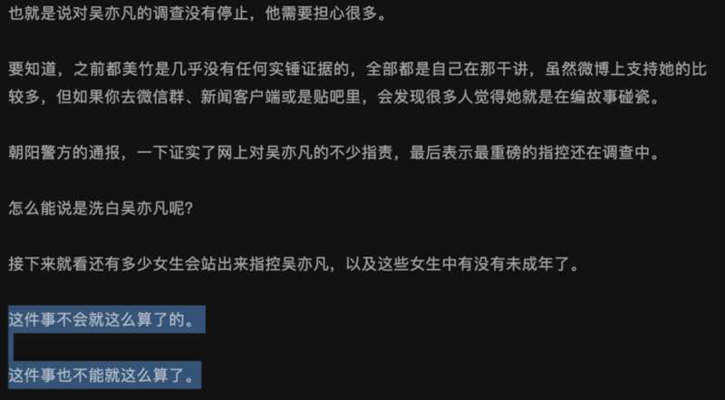 然而那会儿,无论微博营销号、吴亦凡粉丝还是反对吴亦凡的人,都觉得警方在偏袒吴亦凡,所以那会儿我写了篇文章警方通报明明就对都美竹有利啊!。