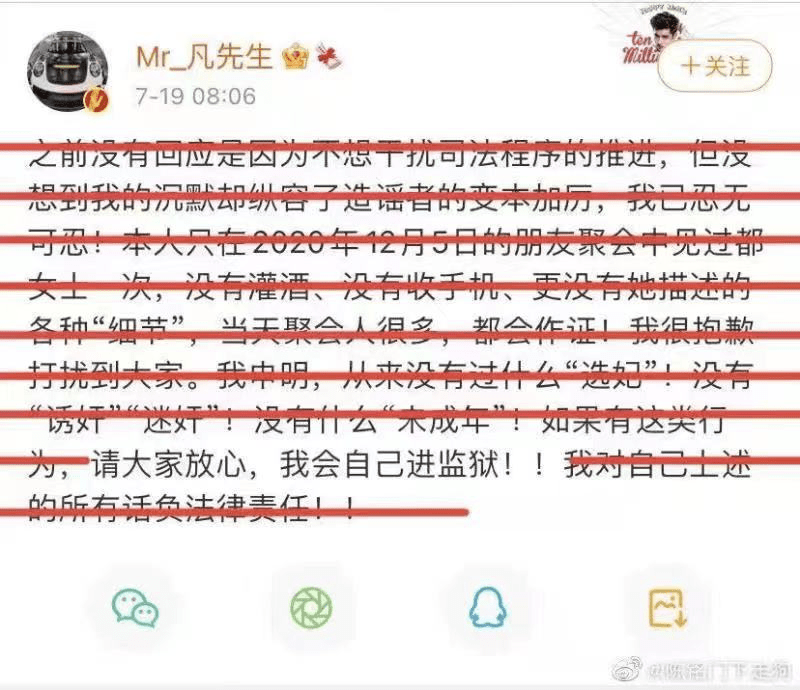 他的发言概括一下主题思想就是:我是出于正义替天行道,没想到都美竹说的很多信息都不对。