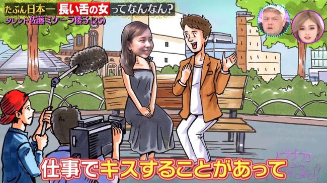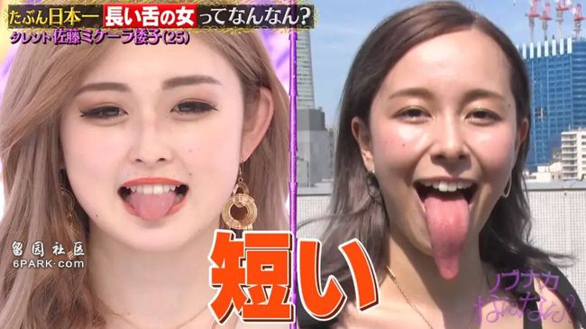现在有最长舌头的吉尼斯世界纪录是一名印度男人,伸出舌头长达10.8cm,但日本原来也有一位不相上下的纪录保持者,这个长相甜美的前女偶像,脱下口罩伸出舌头会吓坏人,就像“蛇”般灵活的长舌能毫不费力舔到鼻尖,她更介绍天生长舌头与男演员拍吻戏时的经历,非常尴尬!