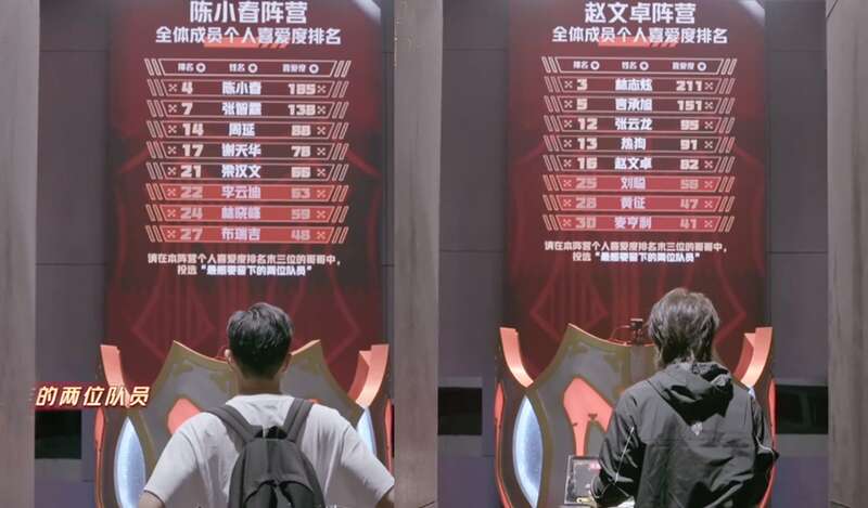 陈小春阵营中,李云迪、林晓峰和布瑞吉3人的个人喜爱度排名靠后,赵文卓阵营中,刘聪、黄征、麦亨利3人的个人喜爱度排名靠后。通过大家的投票,陈小春阵营中的李云迪和赵文卓阵营中的麦亨利两人遗憾被淘汰。