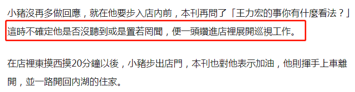 在记者问道罗志祥对网上言论的看法时,他选择了沉默,紧接着,记者又问“王力宏的事你有什么看法?”罗志祥同样没有回答,自顾自地往自家店内走去,不能确定是没有听到还是故意不回答。