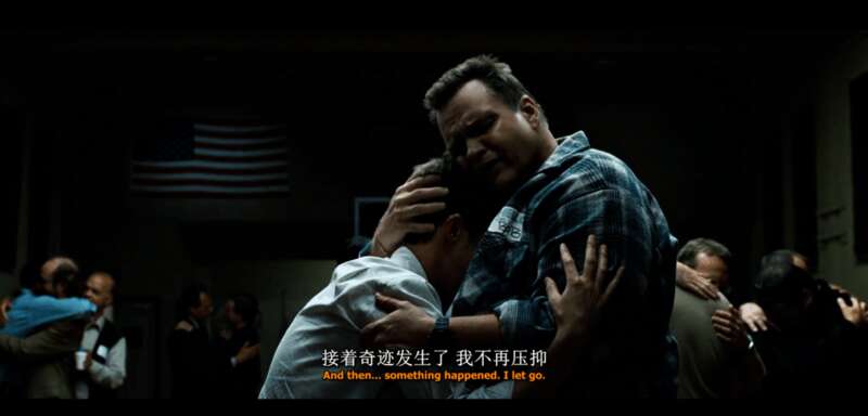 于是他跑去教堂,和得了睾丸癌的人互相倾诉,并最终最终在一个因为使用类固醇,最终长出大胸的男人怀里得到了慰藉: