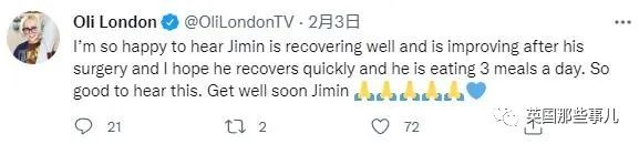 在听说“前夫智旻”感染新冠,同时必须手术时,Oli还发推祝福,非常有情有义……