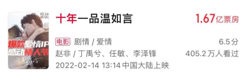 但是,评分仅有2.7的《十年一品温如言》,上映首日票房即破1亿,一举拿下中国影史该档期新片单日票房冠军;