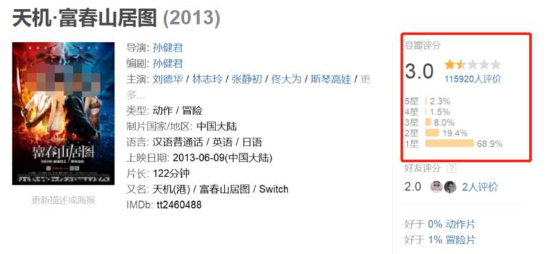 2013年起初,一二线城市的影迷们还在疑惑为啥《富春山居图》(豆瓣评分3.0)拍得稀烂却能斩获3亿票房的时候,