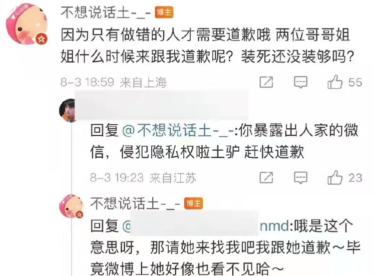 8月3日,徐嘉余的前女友土土再次在社交平台上向王冰冰“开炮”,要求她道歉。