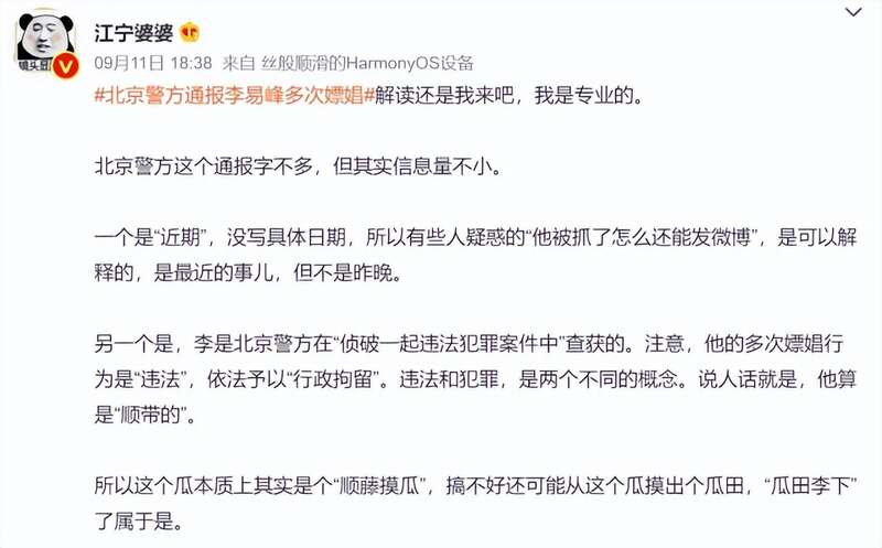 近日,江宁公安大V“江宁婆婆”对李易峰嫖娼事件进行解读,透露了很多细节。