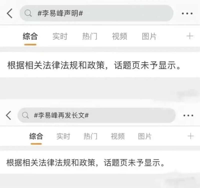 00:11 李易峰严正声明微博及长微博消失;随后,“壹峰信”严正声明消失;
