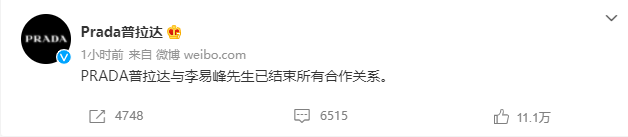 通报发布后不久,相关内容冲上微博热搜,PRADA普拉达、YAYA鸭鸭、真果粒、HONMA高尔夫、京都念慈菴、六福珠宝等相继发布声明,终止与李易峰合作。