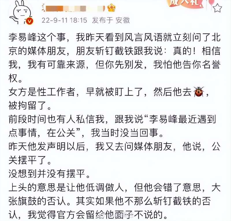 15:50 有网友在微博爆料,李易峰嫖娼被抓;