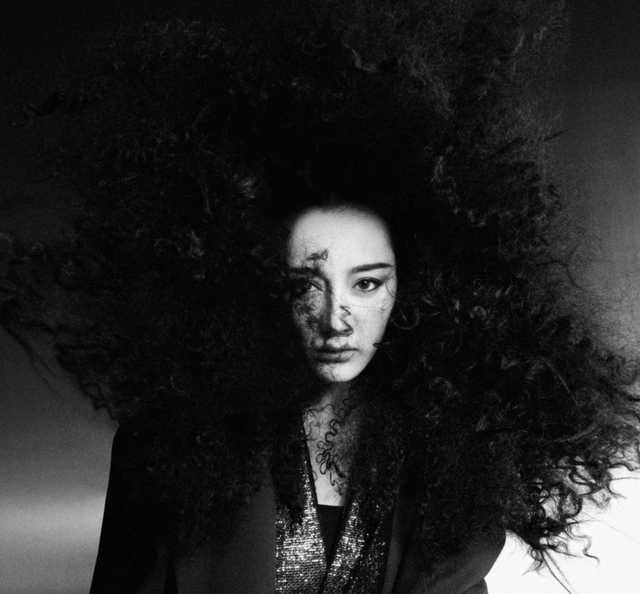 除了扫把头系列造型,热巴还拍摄了一款爆炸头造型,大众接受度稍微高一点,整体没有那么“时尚”,特色主要在复古浓妆,算是热巴安全区。
