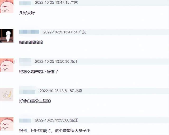 热巴本来就是长窄脸,顶着个冲天扫把头更是进一步拉长了她头部比例,连额头都感觉变长了一大截,加上她近年有意控制体型,整个人越来越单薄,厚重的扫把头更是显得她头重脚轻,头肩比彻底失调——这头发都快赶上她肩膀宽了,看久了莫名有种滑稽感,好像西方童话里的反派人物。
