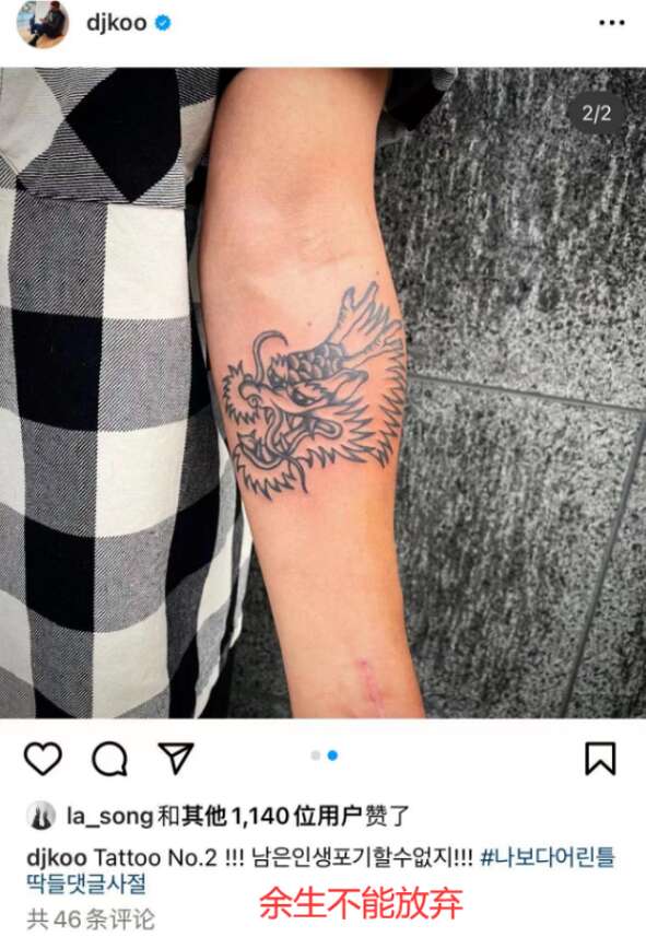 此外,还有网友爆料,2021年具俊晔分别在两个手臂纹了“鸡”和“龙”的纹身,这两个图案也对应了双方的生肖。