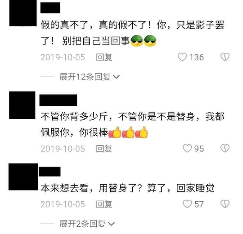 △要是没了专业的服化道,其实很多人并不像本尊 同样,对比请替身的好莱坞明星们,这报酬就是几万美金和几千万美金的差距,这波中美难得一致,抑或是全球娱乐圈都这副尿性。 所以做替身想熬出头,要么转型做武指团队,要么就去疯狂挑战危险动作博出位,毕竟现在好莱坞CG技术发达了,长得像不像都没啥竞争力,毕竟后期能轻松把脸给你换了。