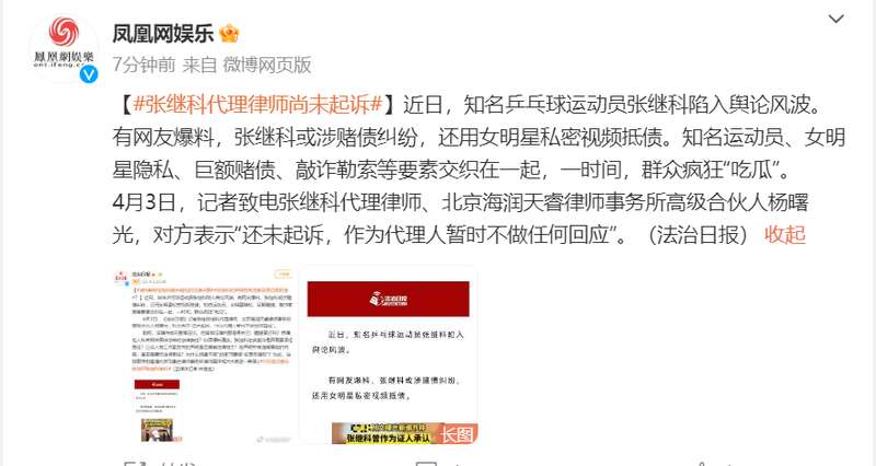 法律是道德的最低底线,尽管目前没有证据说张继科本人违法,但是他在道德层面已经有了较大的瑕疵,希望他能诚恳面对自己,不要像16岁一样只会逃避,觉得只要不回应便可以不站在风暴中心。