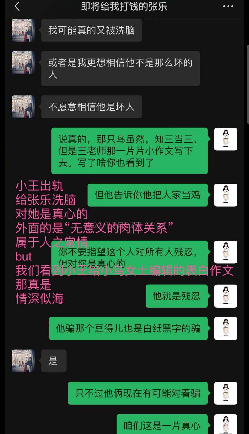 没错,有意思的地方就在这里,爆料网友和王某变得没“交情”是因为网友发现了王某多年来一直在和出轨对象胡搞,并告知了王某老婆张乐!