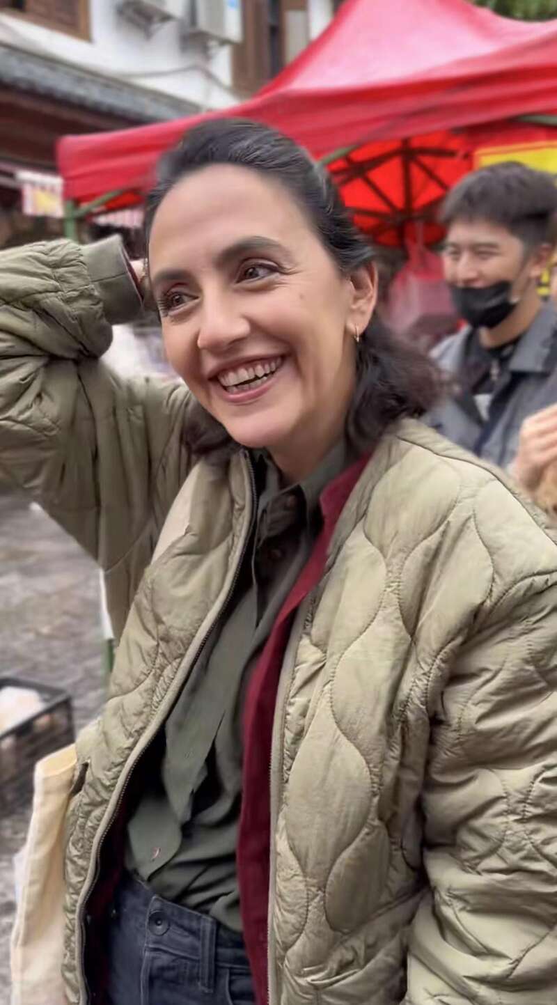 从曝光的画面中能够看出,安娜正在大理的一个路边菜市场里,不远处她的同伴好像在拍摄宣传片,周围人来人往,但大家也都没有打扰他们,而是各忙各的事。