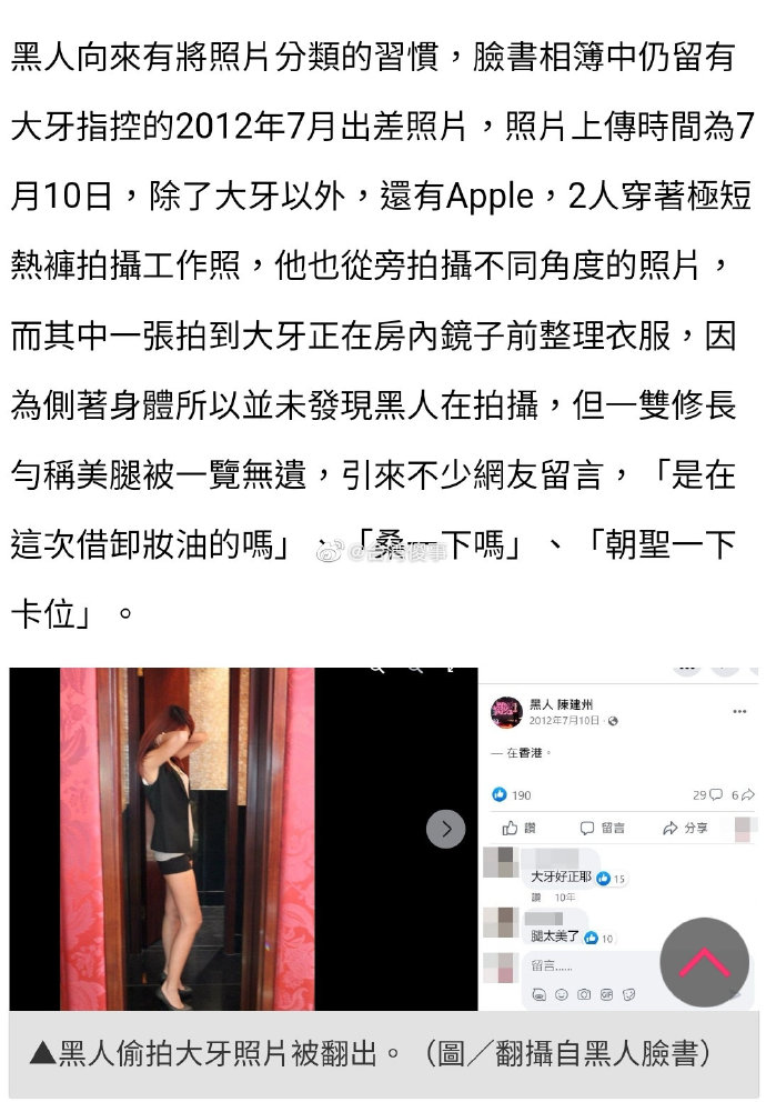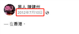 根据陈建州当年的社交内容,他晒出的是偷拍照,女方身穿短裤正在整理衣服,没有看向镜头,根本不知被拍,陈建州还配文“在香港”,时间正是7月10日,也就是发生性骚扰几天前。
