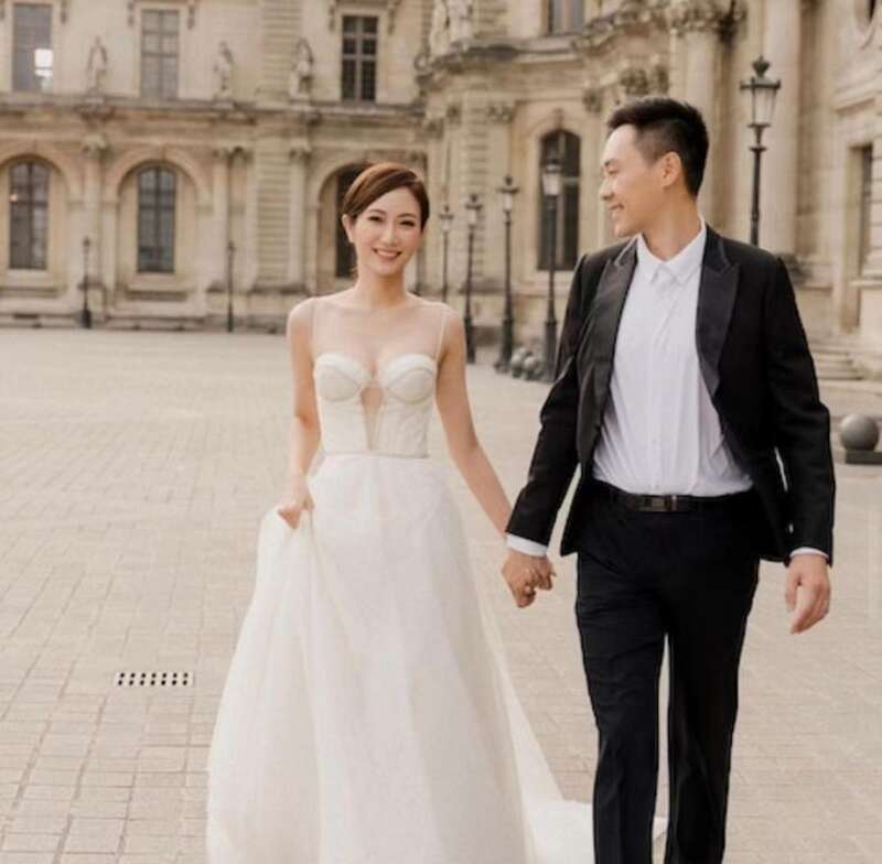 此外,蔡嘉欣还透露在这组婚纱照中,她当中的两条裙子还是特意从香港借来巴黎拍摄的,两条裙子都是蔡嘉欣非常喜欢的。