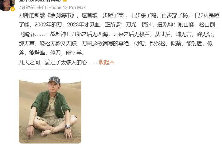 一时间网上各种解读如潮水般涌来,让人目不暇接。其中流传最广的解读,是“刀郎之后无西海,云朵之后无楼兰,从此后,坤无言,峰无语,那无声,晓松无影又无踪。”