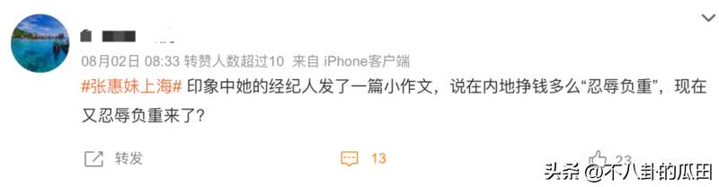 这还真不是臆测,因为张惠妹的经纪人陈建川曾发表不当言论,内容总结起来的意思是:台湾才是我的家,我去内地赚钱是被迫,是忍辱负重。