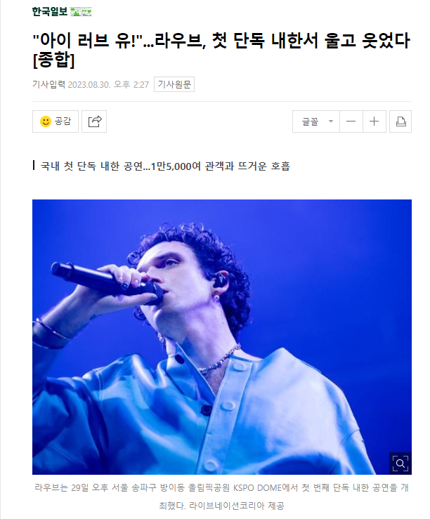 昨日下午,美国歌手Lauv在首尔松坡区芳荑洞奥林匹克公园KSPO DOME举行了他的第一次韩国单人演唱会。