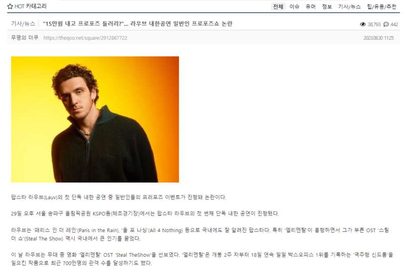 Lauv是一位很有潜力的年轻歌手,其歌曲《Paris in the Rain》、《All 4 Nothing》在韩国广为人知,还曾经跟韩国顶流男团防弹少年团合作了《Make It Right》、《Who》等,增加了在韩知名度。