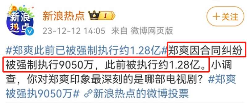 近日,郑爽再度闯入大众视线,她本人被强制执行9050万元,冲上热搜。