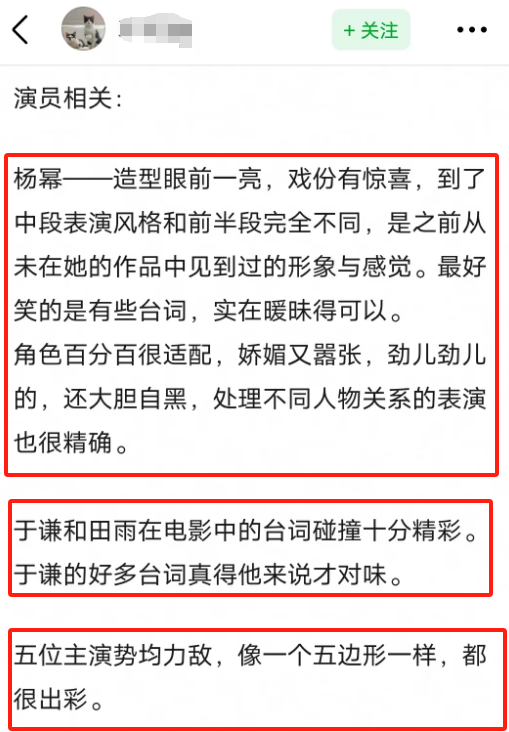 围观到这里,只觉得有流量参演的电影果真能省下宣发费用,杨幂粉丝早早就做好了首映口碑总结,不用整理直接看,总而言之,就是一片夸赞!
