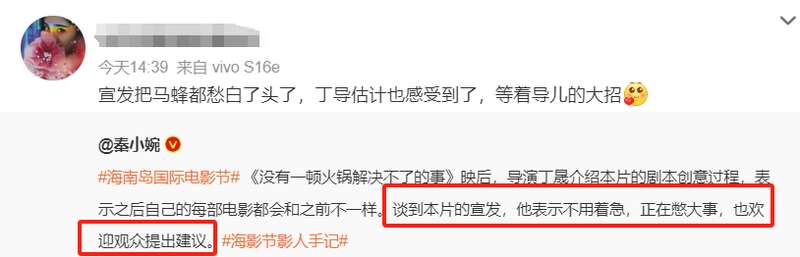 在《没有一顿火锅解决不了的事》首映礼上,还有观众专门提到了电影宣发问题,导演回应表示不用着急,正在憋大招,也欢迎观众提出建议,多少能感受到他的为难。