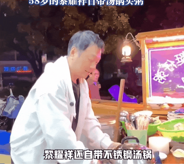 但黎耀祥全程没半点不耐烦,一边对要合照的有求必应,一边笑眯眯地夸粥好吃。