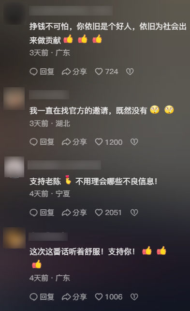 有说他蹭热度的,有说他不务正业的……这些负面评价老陈看多了难受也能理解。