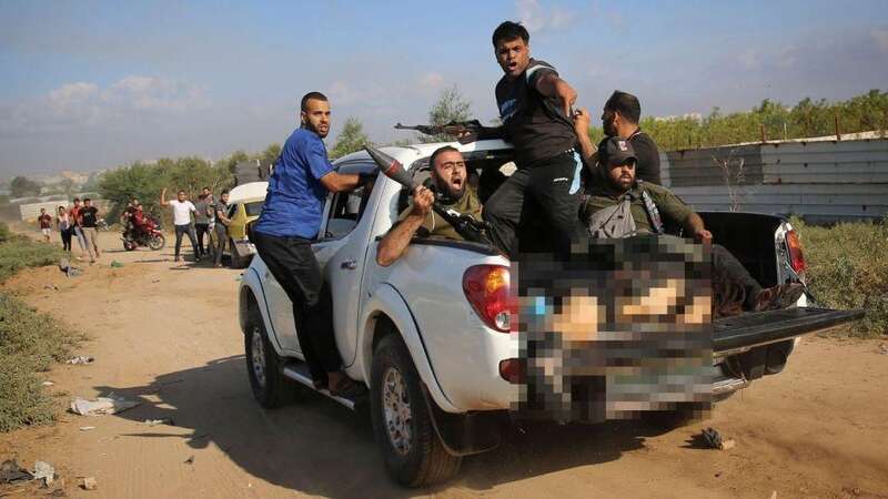 去年10月7日,哈马斯将德裔以色列女孩莎妮·洛克(Shani Louk)的尸体放在面包车上(如上图),然后载着她游街示众(出于对死者的尊重,《镜报》将莎妮的尸体进行了马赛克处理)。