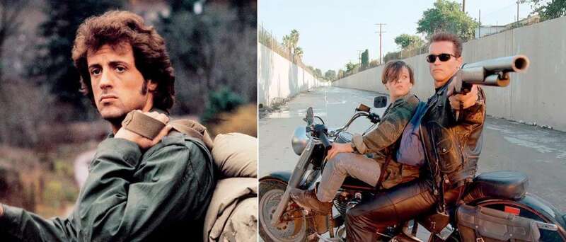 左图:《第一滴血》剧照。 右图:《终结者2》剧照。