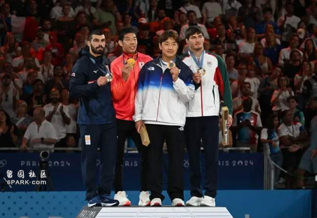 不过因为柔道比赛的特殊赛制,产生了两位铜牌获得者,也就是说,领奖的时候会有四个人出场,然后名场面就来了——李俊奂直接抢了永濑贵规的C位,一个铜牌站到了中间,金牌银牌靠边站。