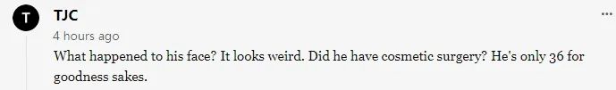 他的脸怎么了?看上去很奇怪。他做过整容手术吗?天呐他才36岁啊。