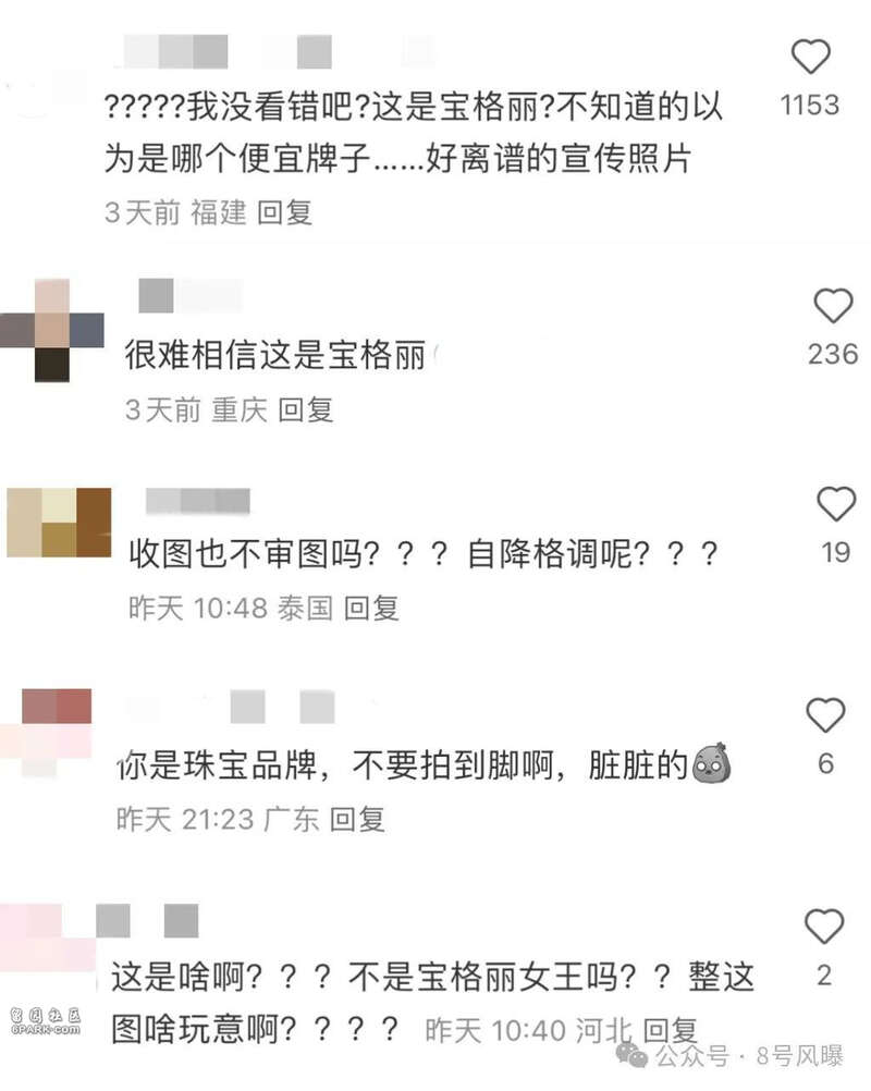宝格丽的这波操作也引来质疑,一时陷入舆论漩涡中。评论区到处在质问:“这图审美这么差,品牌居然能过?你们官方不审图就发出来吗?”