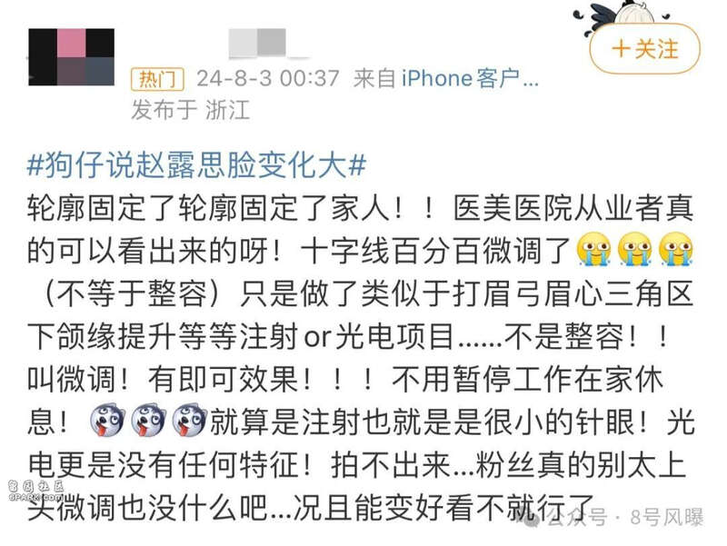 尤其结合近期有狗仔爆料赵露思的脸部变化大,关于猜她是不是整容了的声音也随之而来。