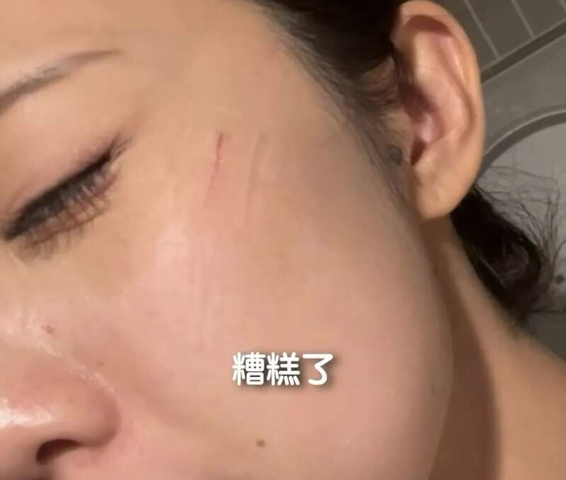 陈欣茵拿出镜子后一照,发现脸上居然多了2条裂痕正在冒出鲜血,马上做了紧急处理,幸好经过每天的治疗,疤痕慢慢复原,希望不会留有痕迹。