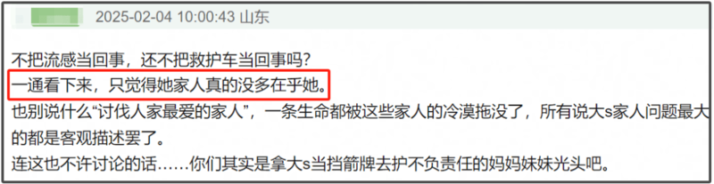 不少网友都认为这里面大S的家人也有责任,没有起到作为家人的照顾和关心作用。