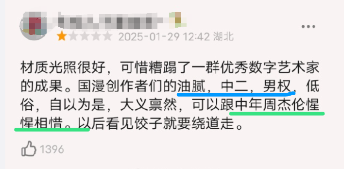 “油腻,中二,男权,饺子可以跟中年周杰伦惺惺相惜。”