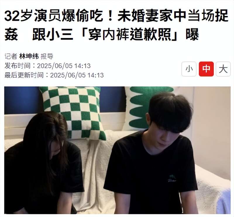 32岁韩国男演员朴竣辉长相帅气,出演50多部音乐剧在韩国走红,6月5日凌晨,被曝出轨25岁女演员禹真英被未婚妻抓包,两人坐在沙发上低头认错照片流出。