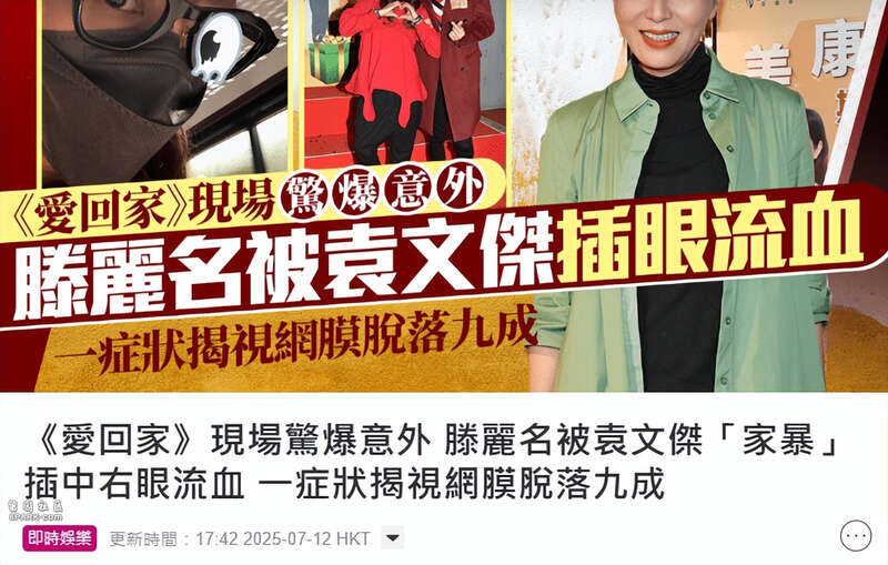滕丽名后来受访才曝光插到自己的人是演员袁文杰,当时正在拍摄《爱回家》见了红,是意外来的,一开始以为没事,右眼不久后变得模糊,在老公陪同下求医后,才发现视网膜因为受伤变大。