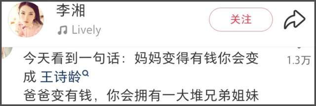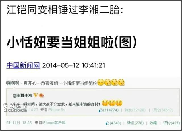 而在2014年的时候,李湘曾发文疑似暗示怀二胎,江铠同还转发恭喜王诗龄要当姐姐,变相锤了李湘有二胎一事。