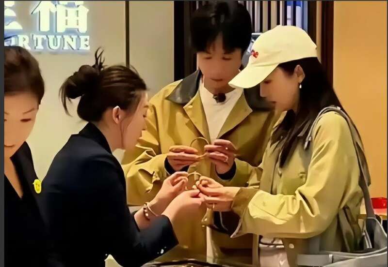 除此之外,还还拍到两个人一起穿情侣装去金店挑镯子。